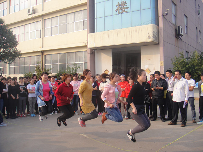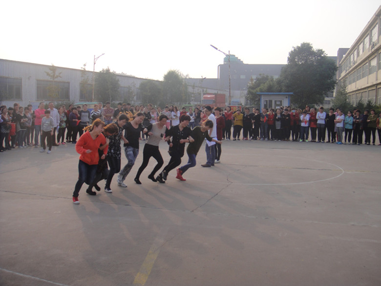 2014年10月22日,公司組織舉辦了2015趣味運動會,這是我司成立以來第二次舉辦該類活動,活動設置了拔河、集體跳繩、滾雪球、協力競走、綜合接力五個項目。按工序分組參加比賽,廣大員工積極參加,累計251人次參加活動,占全員比例的78%。根據比賽規則決出冠、亞、季軍共105人次,占全員比例的33%。趣味運動會圖片如下: